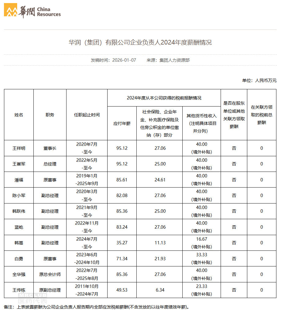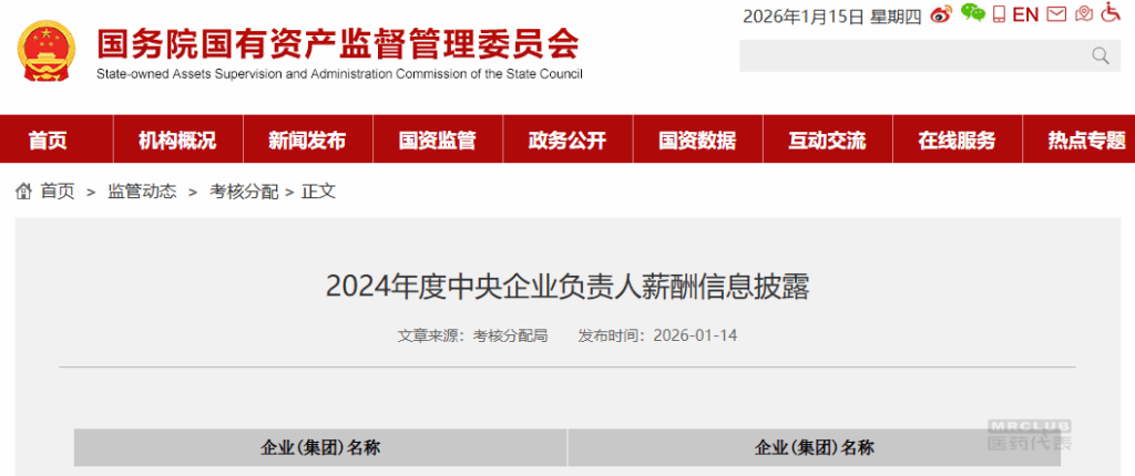 1 月 14 日,国资委发布《2024 年度中央企业负责人薪酬信息披露》,对 87 家央企负责人薪酬信息进行了披露,分别链接至各企业官网薪酬披露页面,供公众查阅。其中,国药集团、华润集团、通用技术集团是业界小伙伴们比较熟悉的医药领域或者具有医药板块的三大央企,薪酬表里可以看到很多医药人熟悉的高管名字。