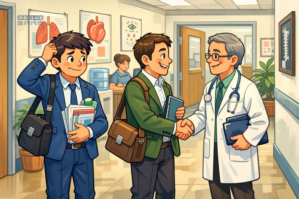 普通代表依然依赖公司 DA、习惯背资料,给自己定的拜访目标就是见面后“赶紧讲完准备的产品内容”,害怕医生中途提细节问题。
